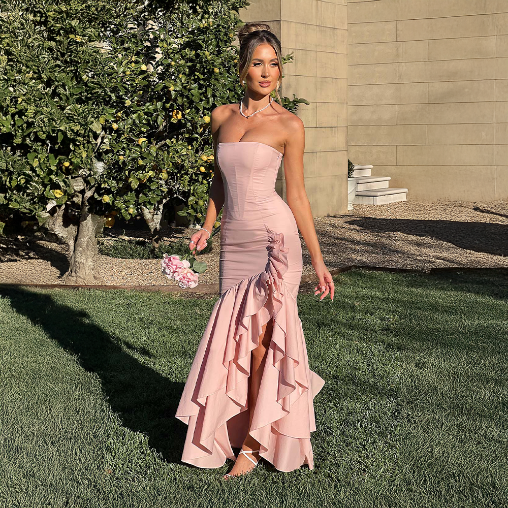 • Sublim silhuett: Den axelbandslösa bodice-snittet framhäver midjan och betonar kurvorna på ett graciöst sätt.